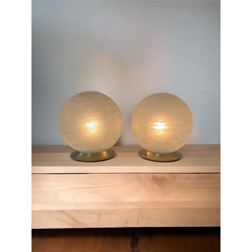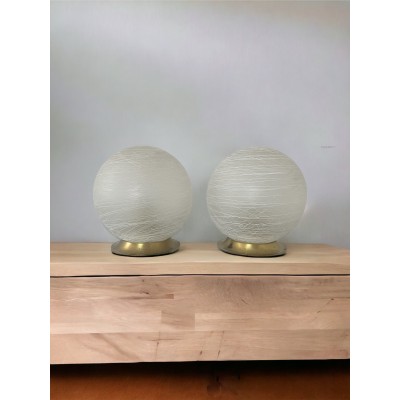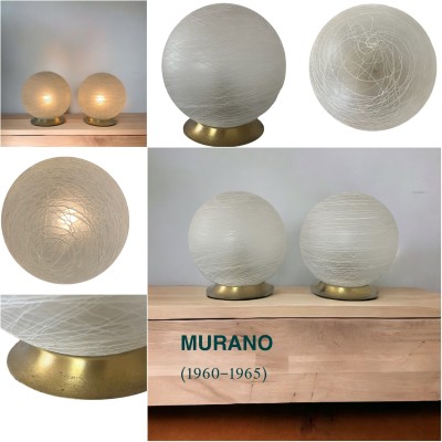 Lampa stołowa lub nocna MURANO, matowe szkło z ozdobną białą "pajęczyną", klosze wykonane ręcznie. Mosiężna podstawa posiada ślady użytkowania typowe dla wieku lamp.