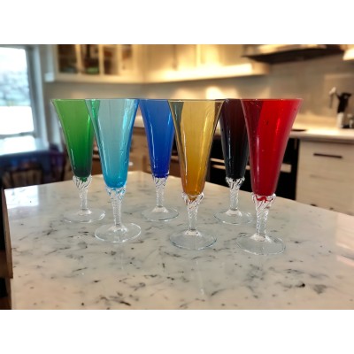 Komplet kolorowych kieliszków ze szkła kryształowego do szampana, ręcznie robione z finezyjną nóżką