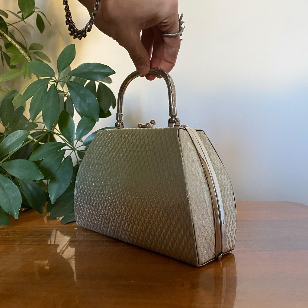 Elegancka torebka - kuferek w kształcie trapezu