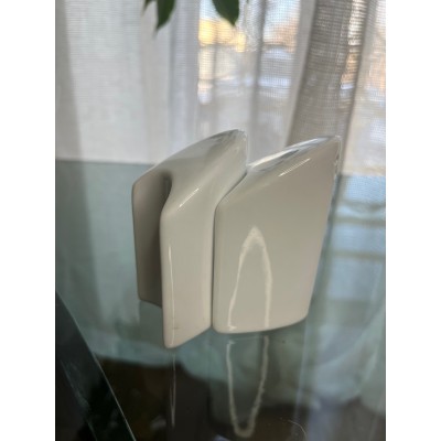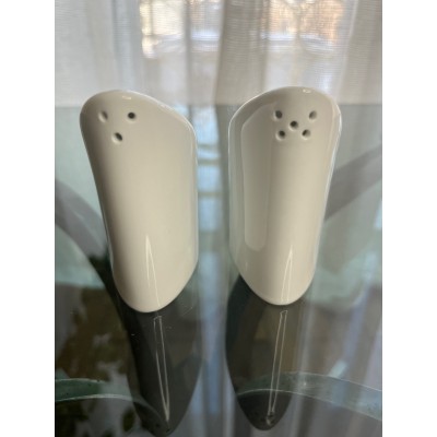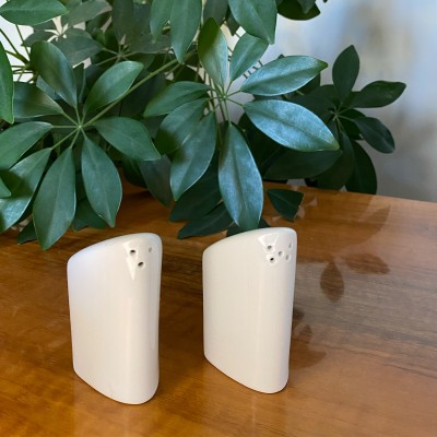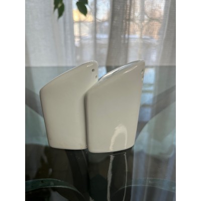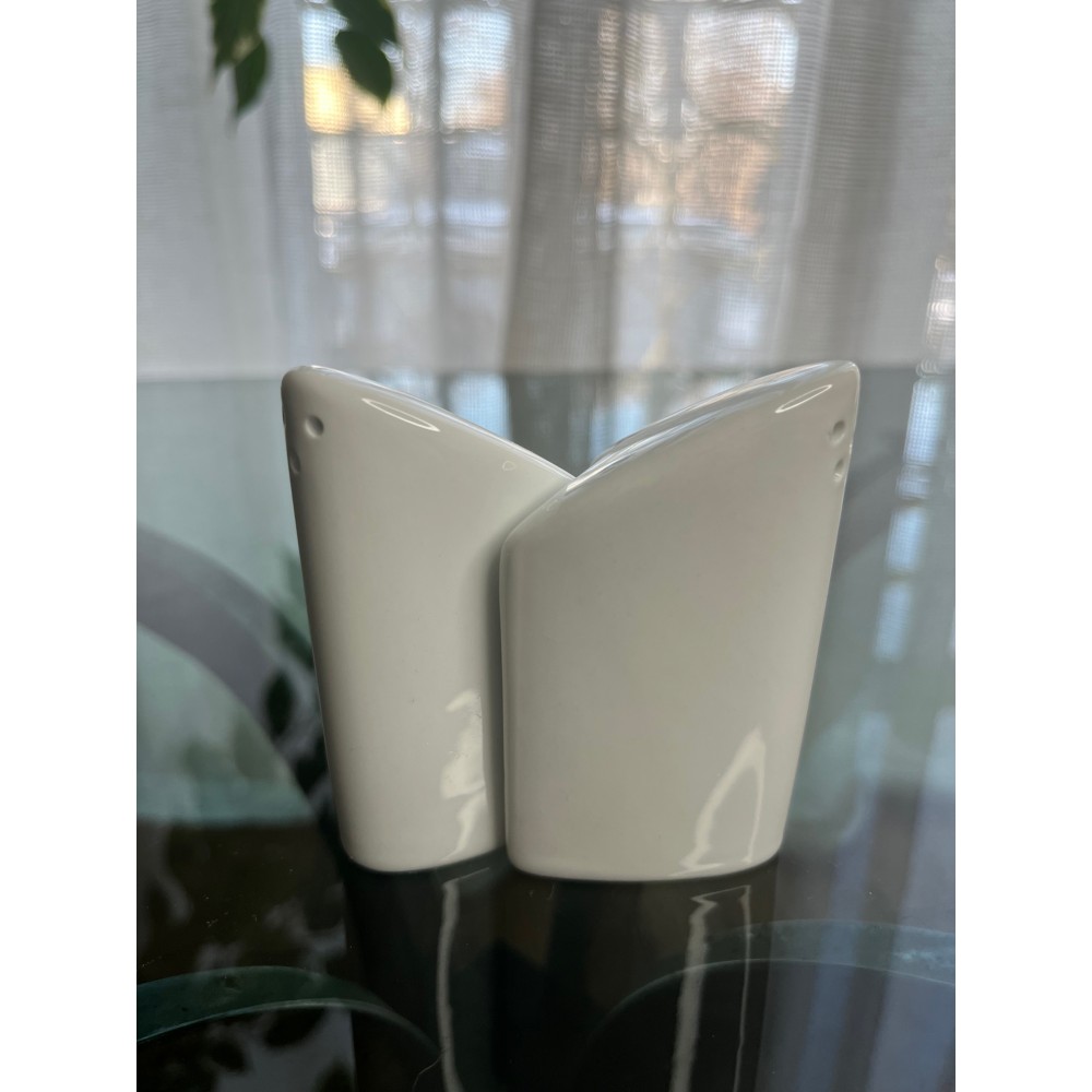 Biały ceramiczny komplet - solniczka z pieprzniczką w bardzo ciekawym kształcie.